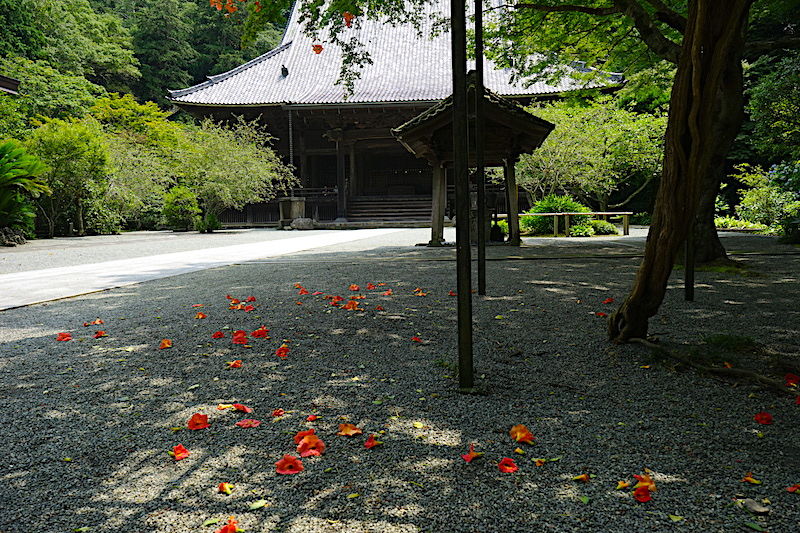 ハギの葉が山門付近を中心に茂ってきました(写真中央)。