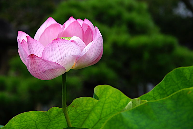 本覚寺では、鉢植えのハスに花弁がいくつも付いていました。