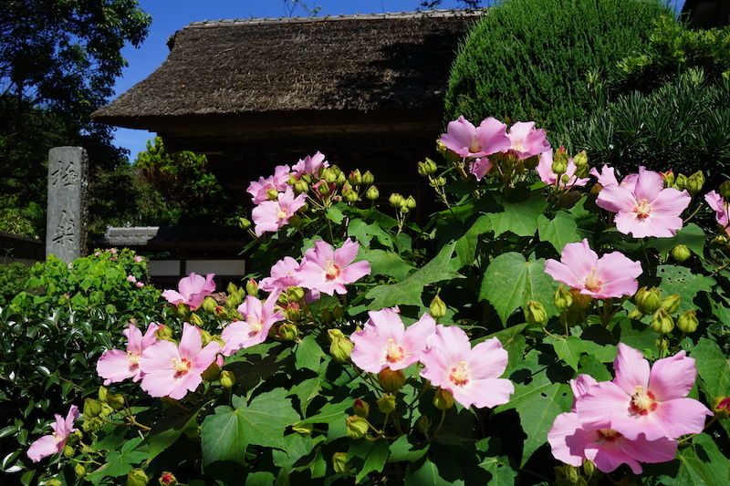 浄智寺はタマアジサイ、妙隆寺はフヨウとサルスベリ。
