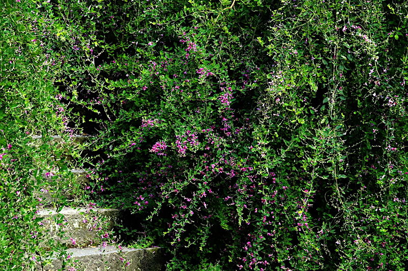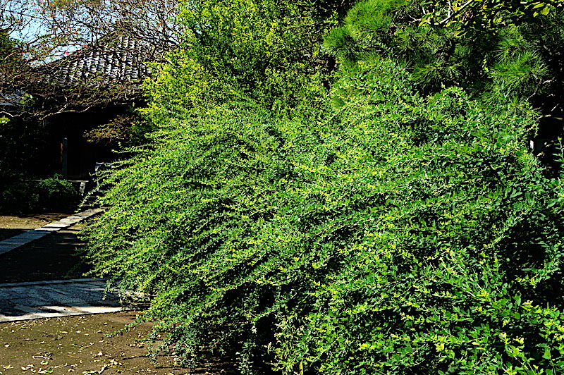 宝戒寺のハギは葉が茂っていますがまだ花は咲いていません。