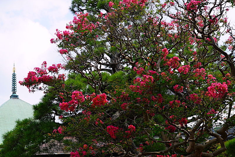 なかなか咲かなかった本覚寺のサルスベリが満開になっていました。