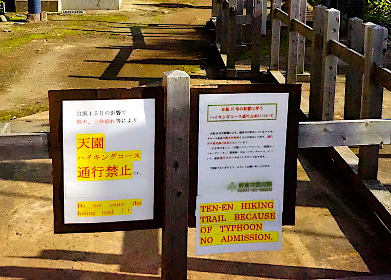 半僧坊からの天園ハイキングコースは15号台風の影響で未だに通行止め。