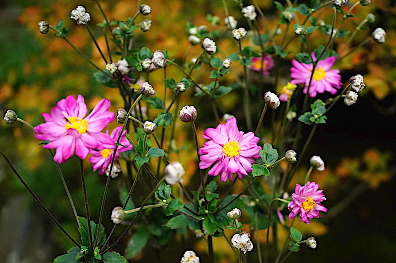 北鎌倉の「浄智寺」、シュウメイギクが不揃いに咲いていました(左)。