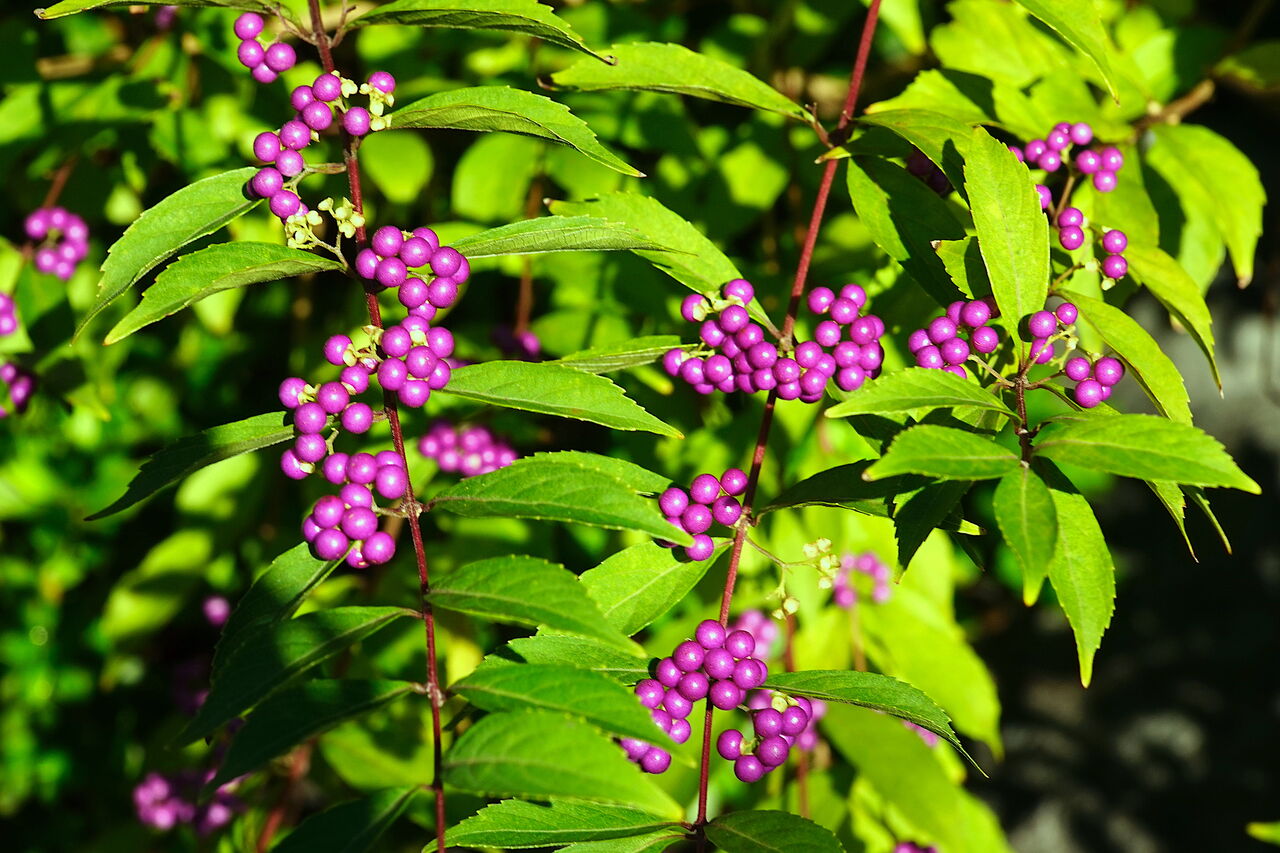 <左、トラノオ> <右、ムラサキシキブ(実)>