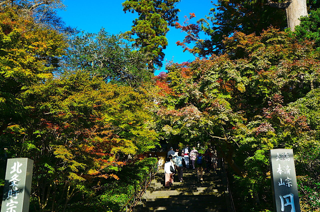 鎌倉も秋空が広がっていましたが紅葉の季節はまだこれから。