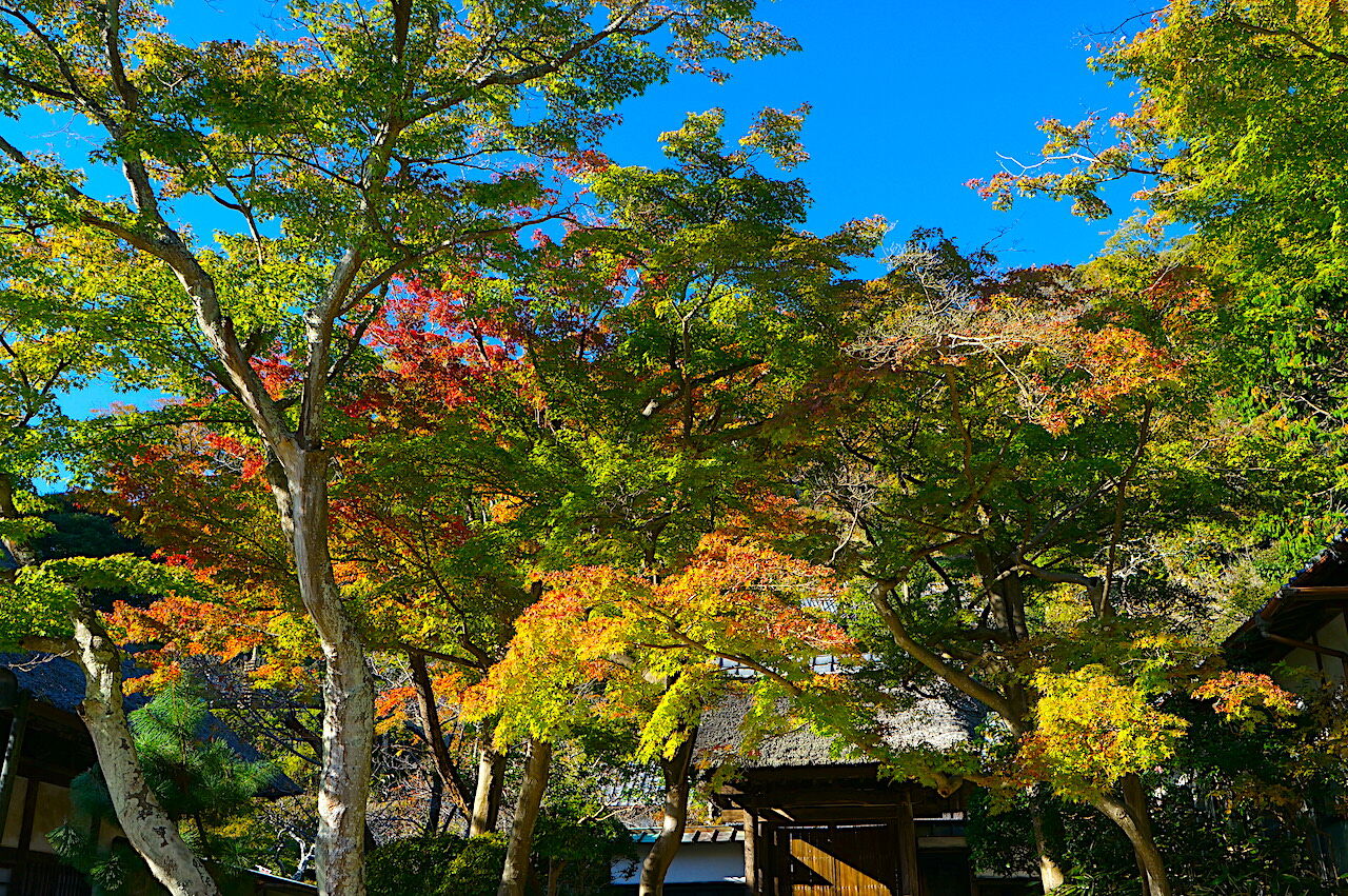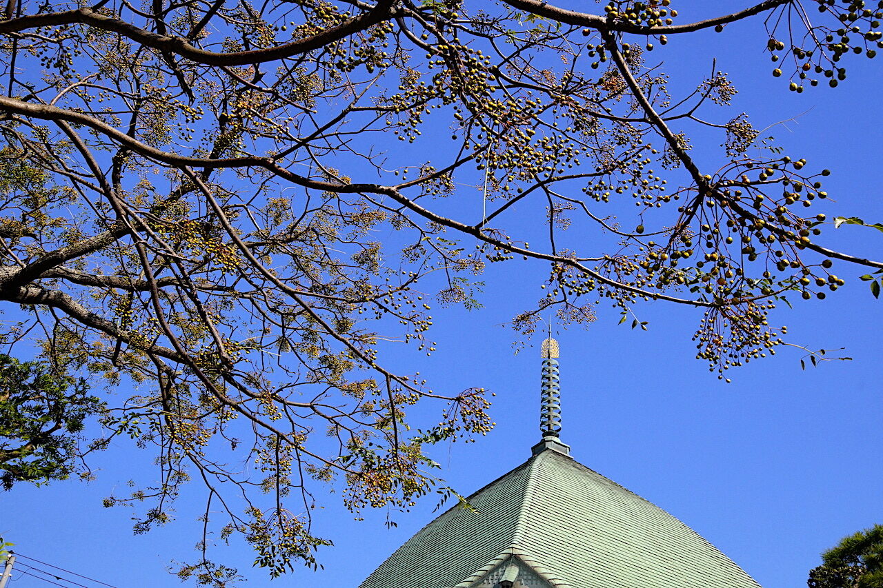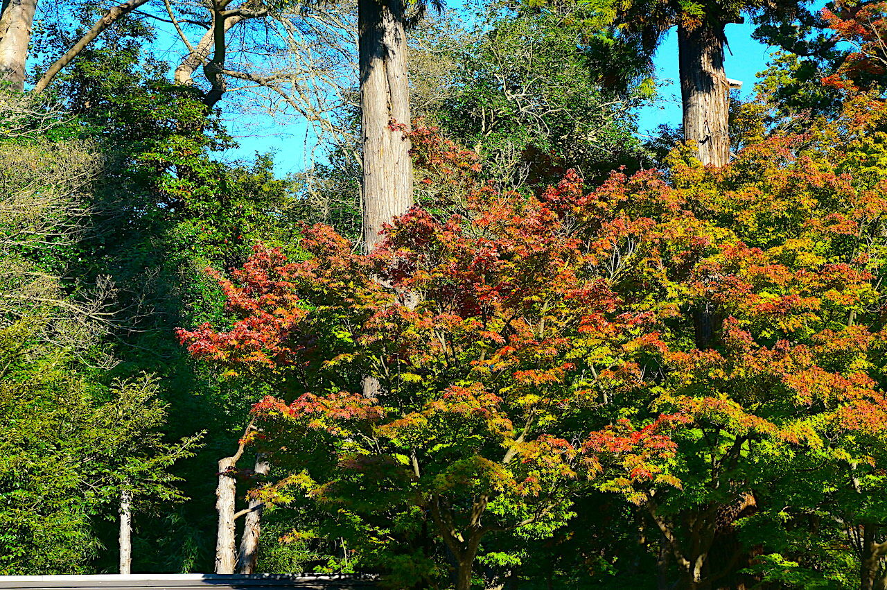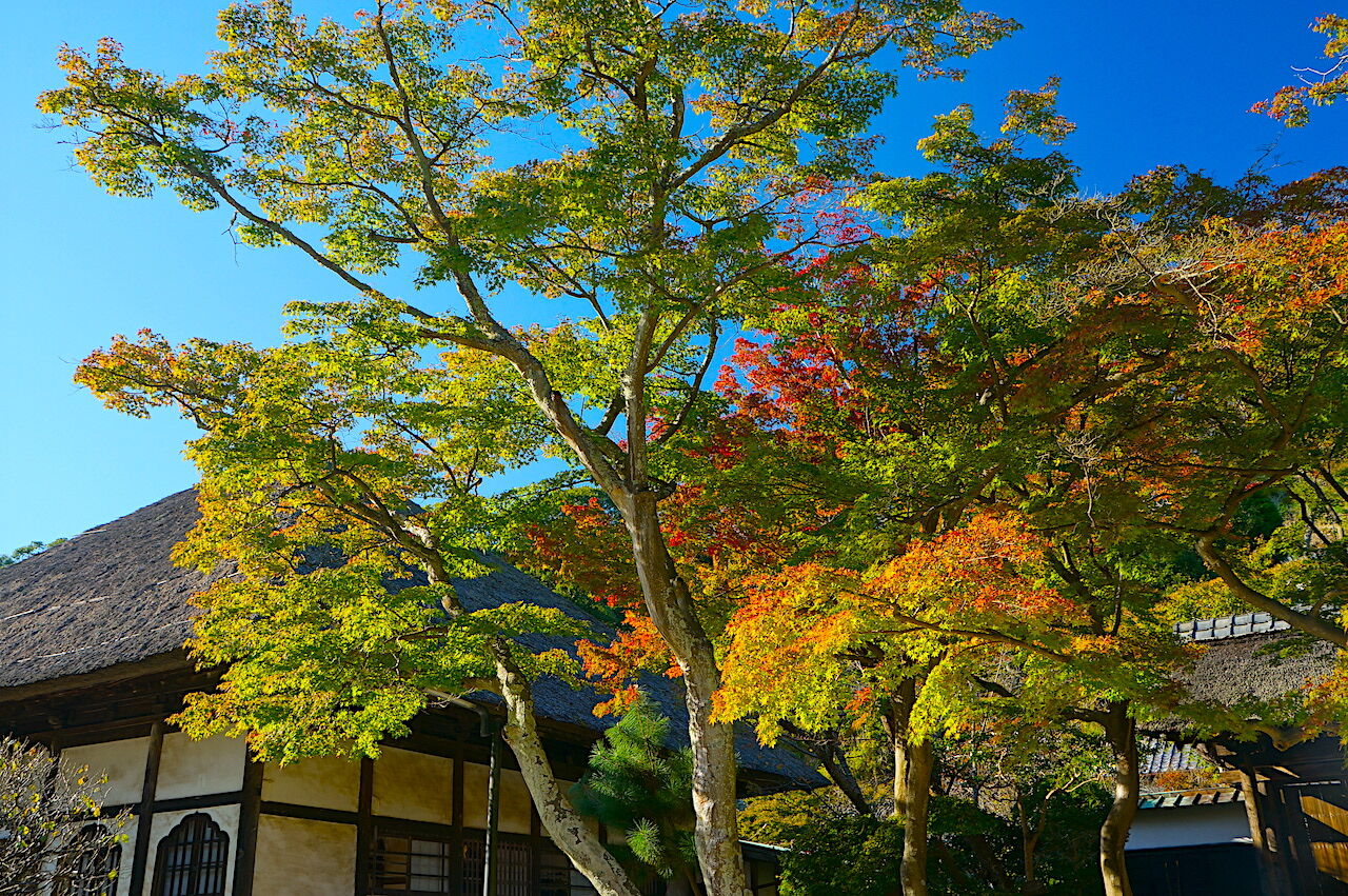 鎌倉は澄んだ秋空になりましたが、紅葉はなかなか進みません。