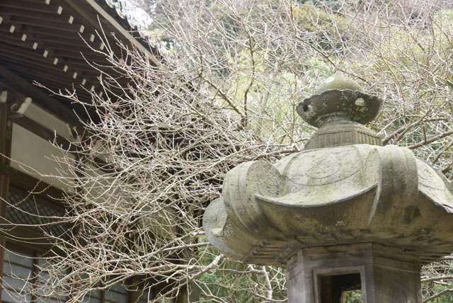 安国論寺の境内には白梅が少し咲いているだけで紅梅はまだ全然咲いていません。