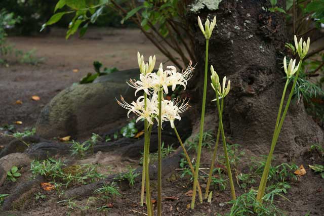 ヒガンバナは宝戒寺の白がだいぶ咲いていました(左)。