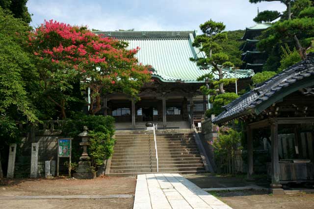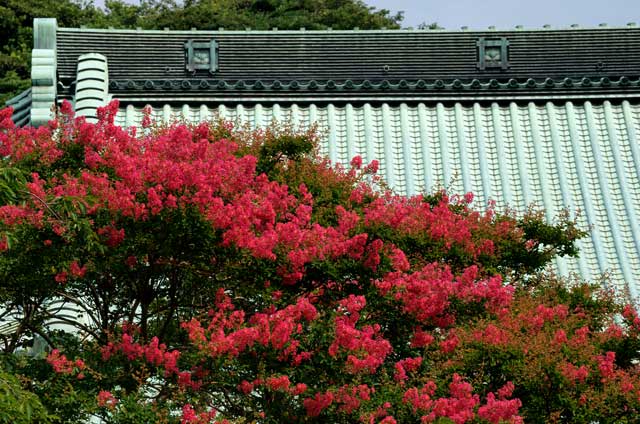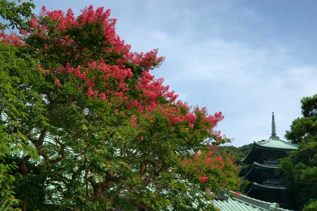 江ノ電電鉄「江ノ島駅」の近く、龍口寺のサルスベリが咲いています。