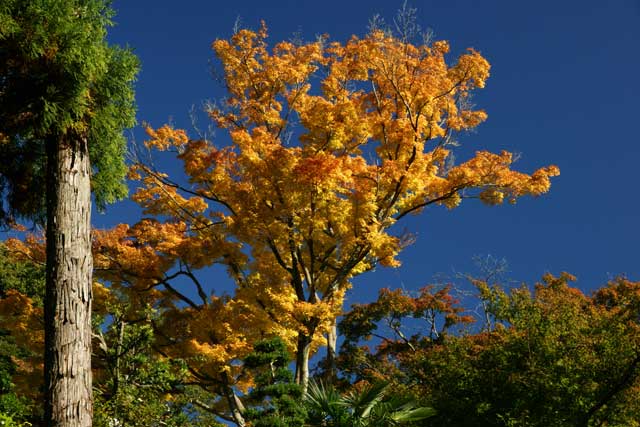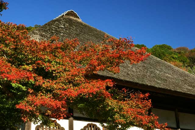快晴の天気、冬型が強まっています。北鎌倉、円覚寺では紅葉が始まってきました。