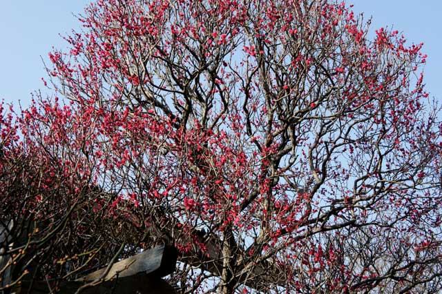 宝戒寺のウメも紅梅はだいぶ咲いていますが、白梅は蕾が目立ちます。