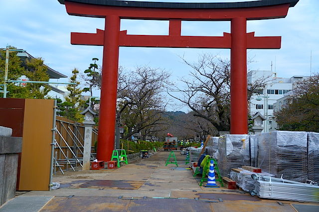 鶴岡八幡宮の段葛は老朽のため改築工事が始まりました(写真左)。