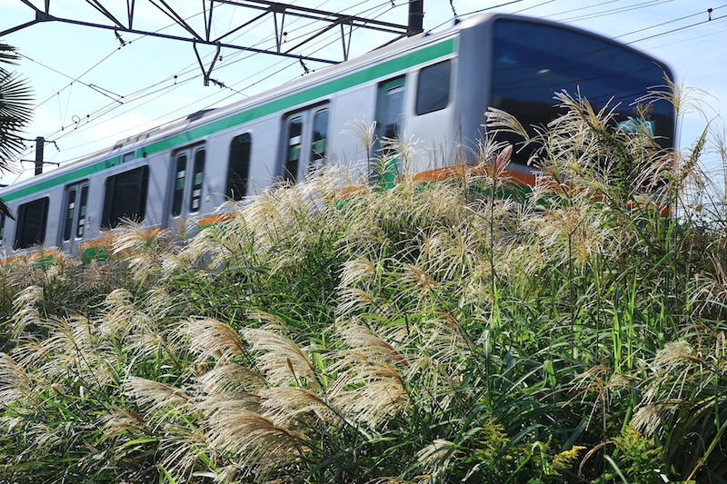 横須賀線沿線にススキの穂が揺れていました(写真下)。