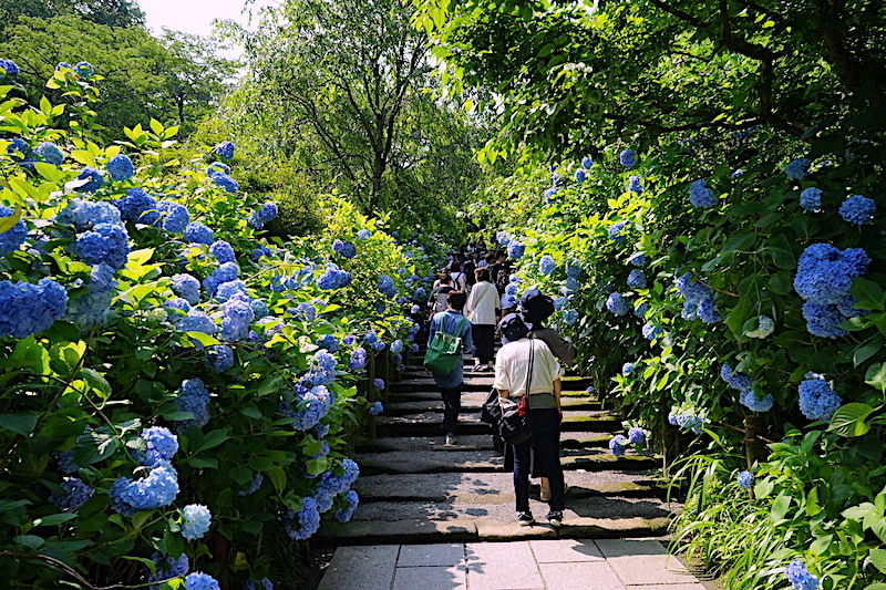 この時期もっとも混雑する北鎌倉の明月院、アジサイが見ごろ。