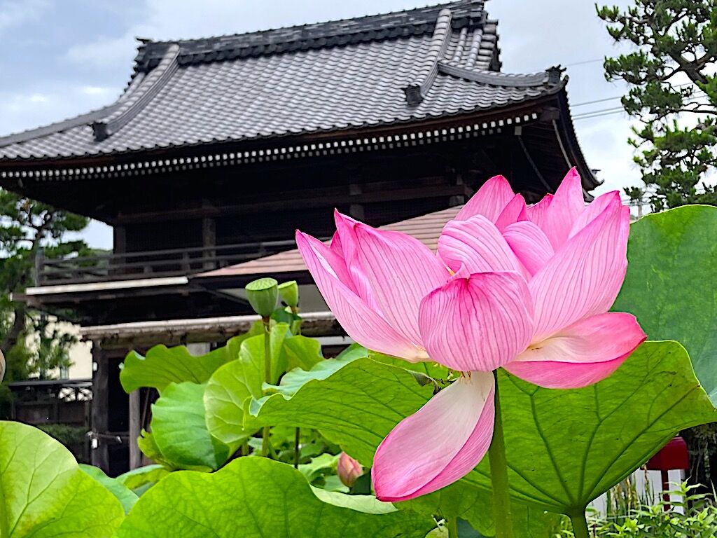 まずは駅近くの本覚寺に寄ってみました。ハスが見ごろになっていました。