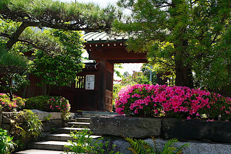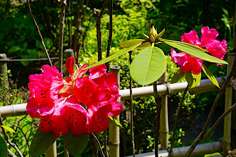 <左、門前のサツキ。右、シャクナゲ>