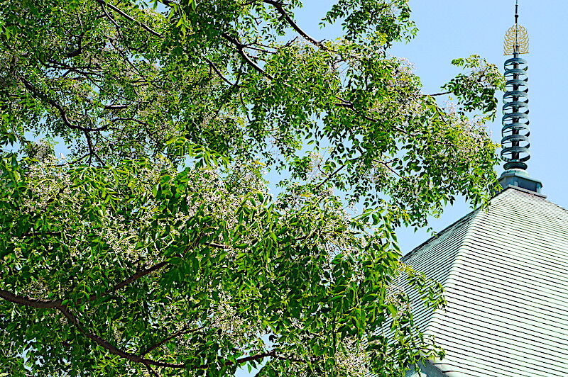 本覚寺のセンダンの木に白い小さな花がたくさんついていました。