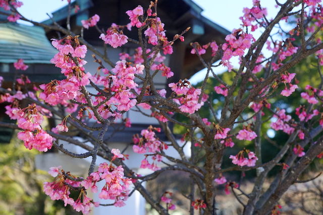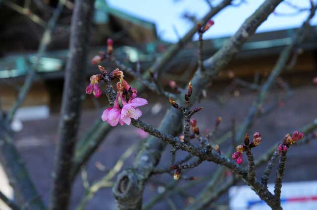 二階堂にある鎌倉宮にはもうカワヅザクラが咲いていました。