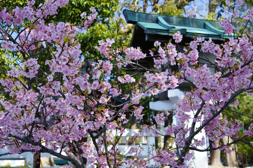 鳥居の右側はまだ咲いていません。