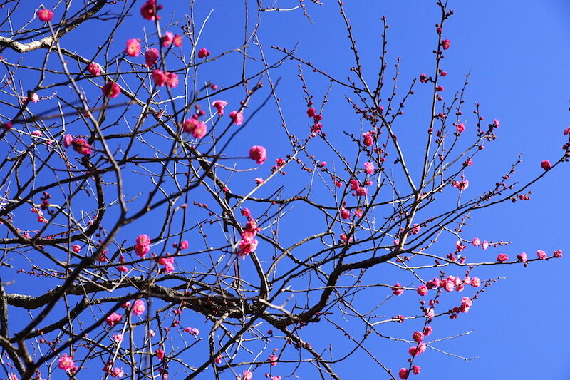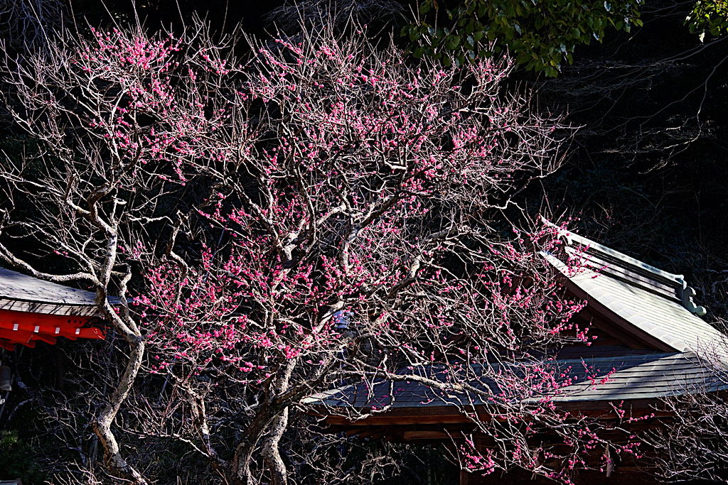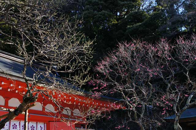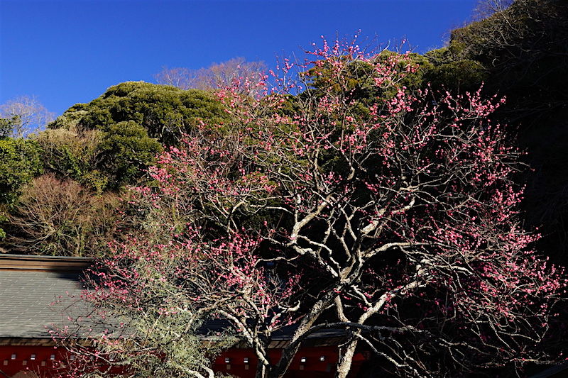 今年も学問の神様、荏柄天神社には寒紅梅(写真上)、