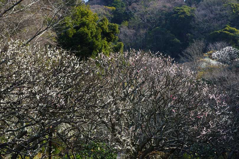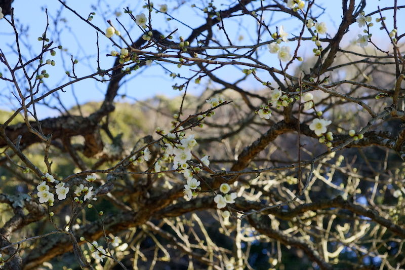 荏柄天神社ではコウバイが咲き出していましたがほとんどが蕾(左)。