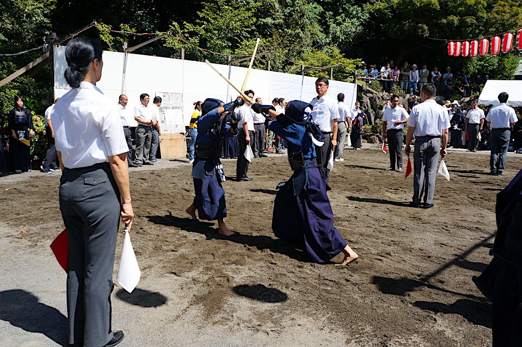 きょうは境内で「奉納剣道大会」が行われ、大きな声が響いていました。