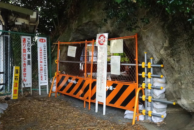北鎌倉駅裏の道は北鎌倉隧道(緑の洞門)が通行止め(右)。