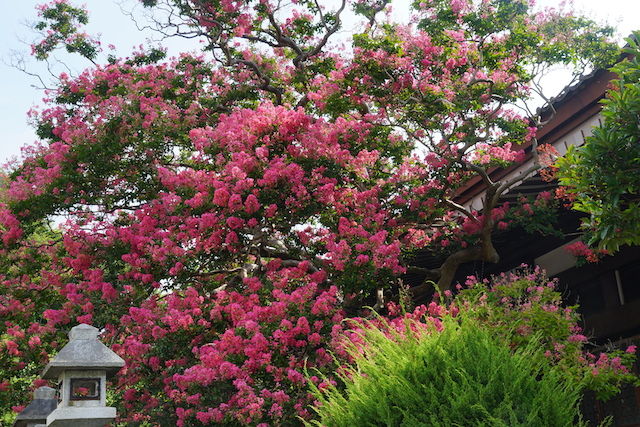 また、扇ガ谷にある英勝寺のサルスベリもやや盛りは過ぎていますがほぼ満開です(写真右)。